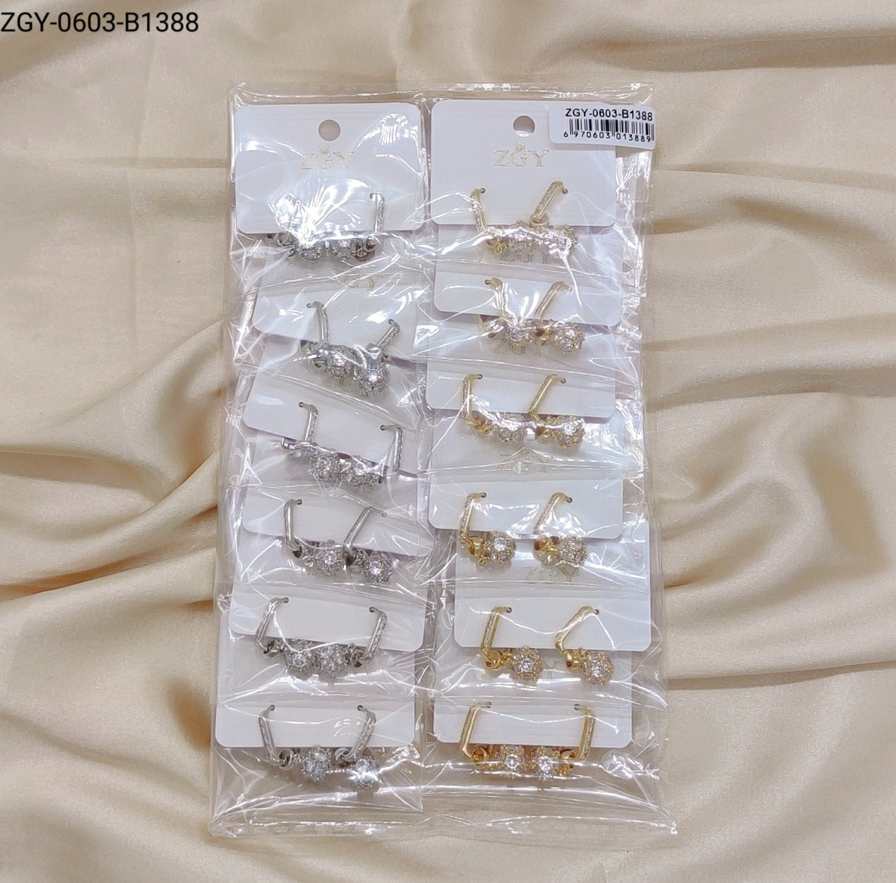 Brincos Folheados de Zircônia 1 dúzia com 12 pçs (ZGY-0603-B1388)